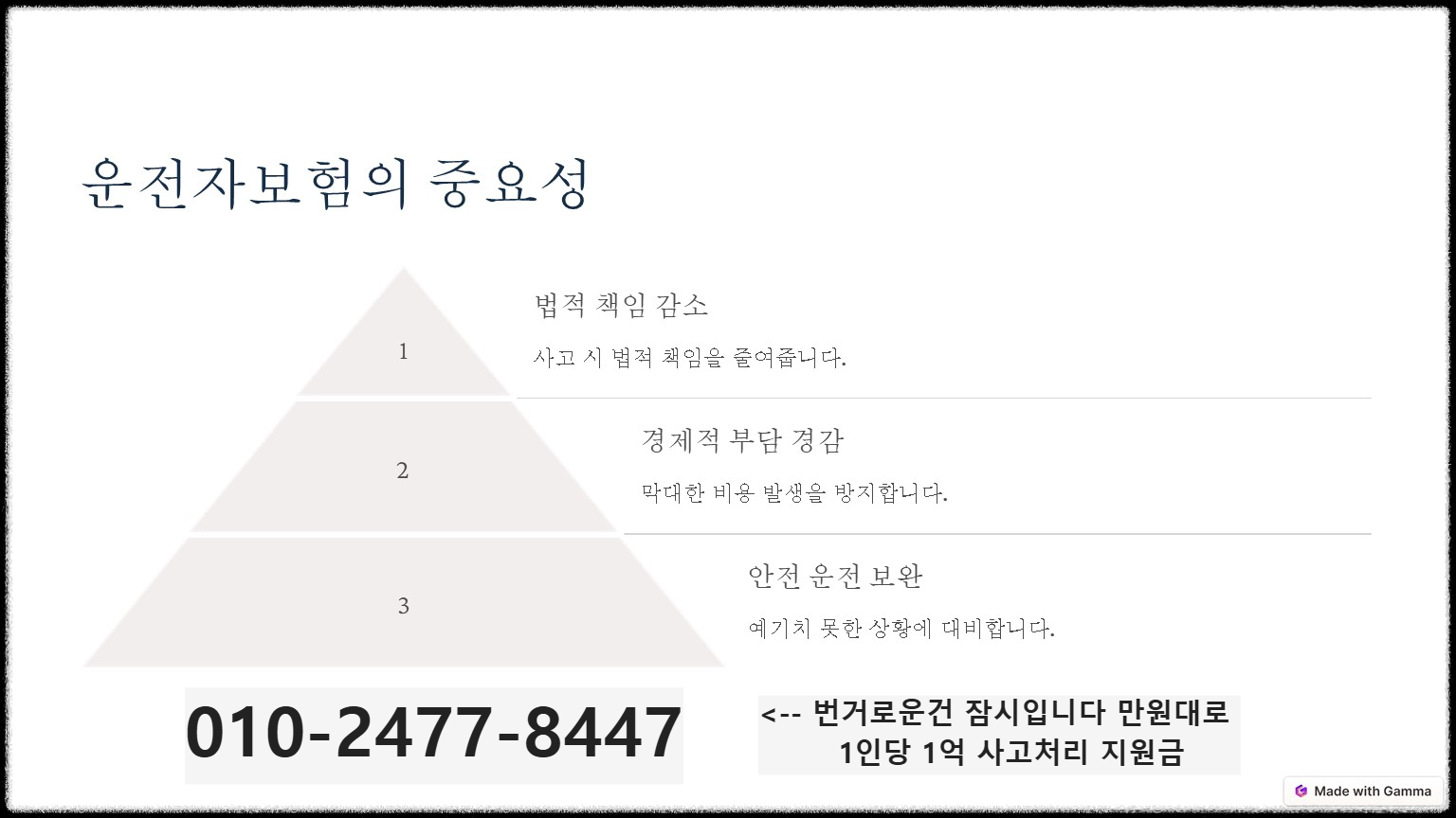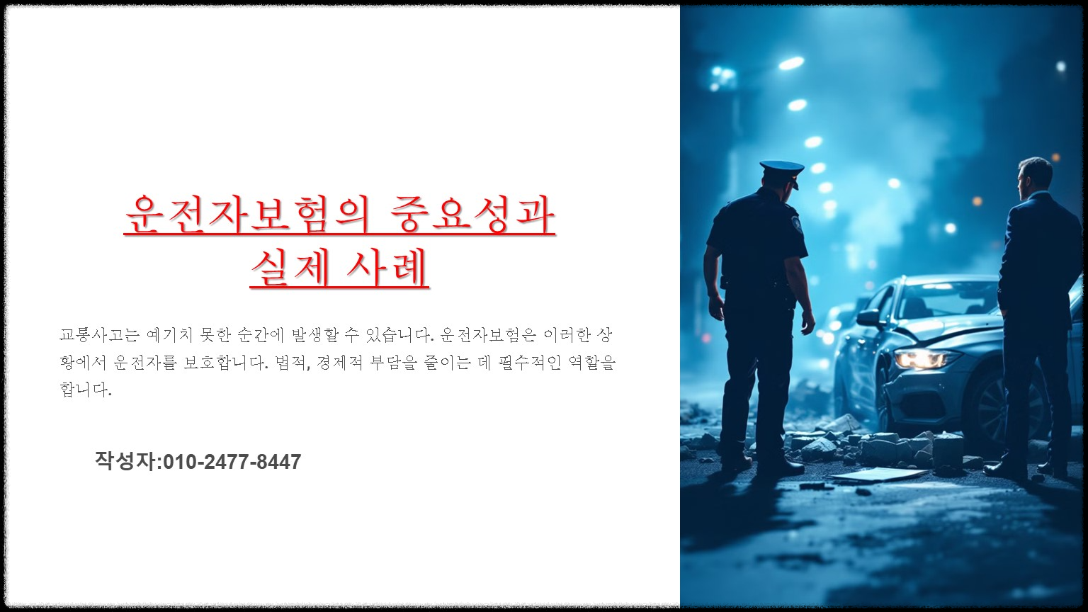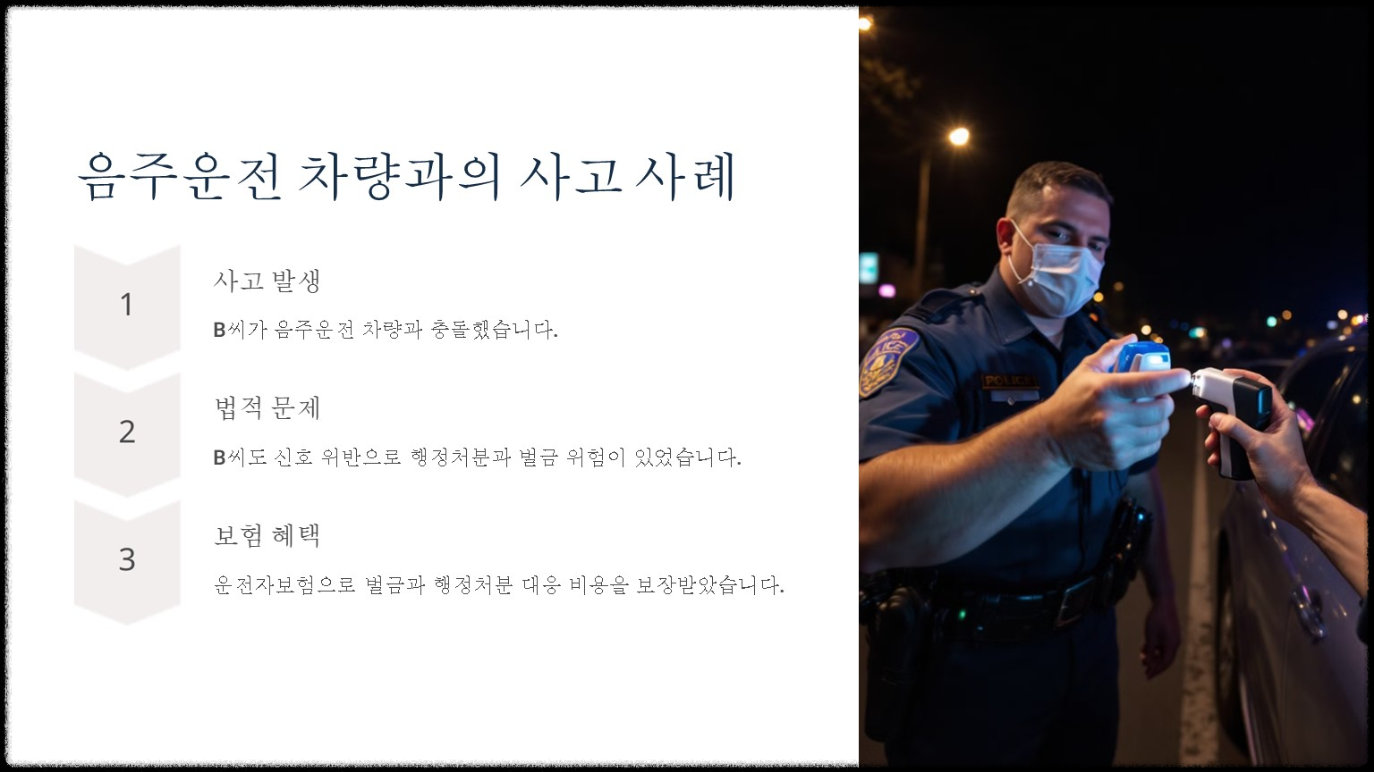 운전자 보험은 단순히 사고 처리와 벌금 보장을 넘어서 사고 이후의 법적 재정적, 리스크를 줄이는 페 필수적인 역할을 합니다 특히 법률 강화와 새로운 규정 적용이 이어지고 있는 요즘 과거에 가입한 보험이 현재 상황에 맞는지 반드시 체크하셔야 합니다 오늘 말씀드린 내용을 참고하시고 더욱 궁금하신거 있으시면 문의주세요