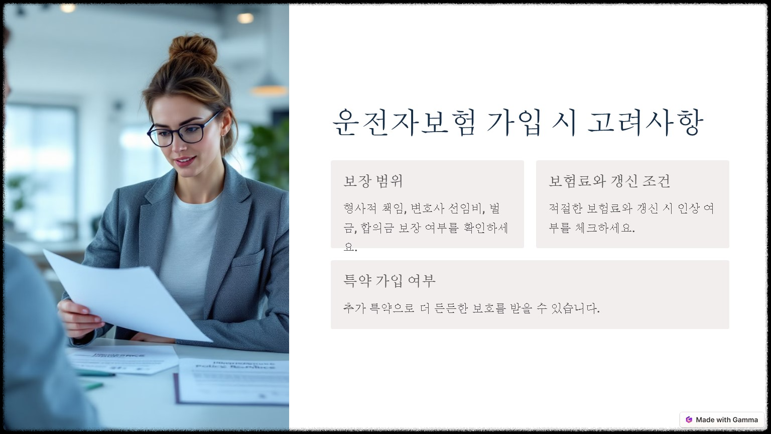 운전자보험은 모든 운전자가 알아야 하지만 특히 자주 운전하는 사람들에게는 필수에요 예를 들어 회사 업무로 운전을 자주 하시는분들, 가족과 함께 타는 차를 운전하는 부모님, 장거리 출퇴근을 하는 직장인들이라면 더 필요하다고 볼수 있죠 .추가로 최근 2022년 전후 보험에 가입하신 분들은 주의해야 합니다. 왜냐하면 관련 법이 자주 변경되면서 이미 가입한 보험이 현재 상황에 맞지 않을수도 있기 때문이에요 그리고 최신 보장을 반영하고 있는지 정기적으로 확인하는게 중요합니다. 특히 대리운전 기사아 영업용 운전자들처럼 사고 가능성이 특히 높은 직업군이라면 더욱 그렇죠!