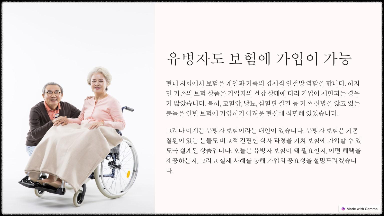 이처럼 유병자 보험은 기존 질환이 있는 분들에게 중요한 안전망이 될 수 있습니다.