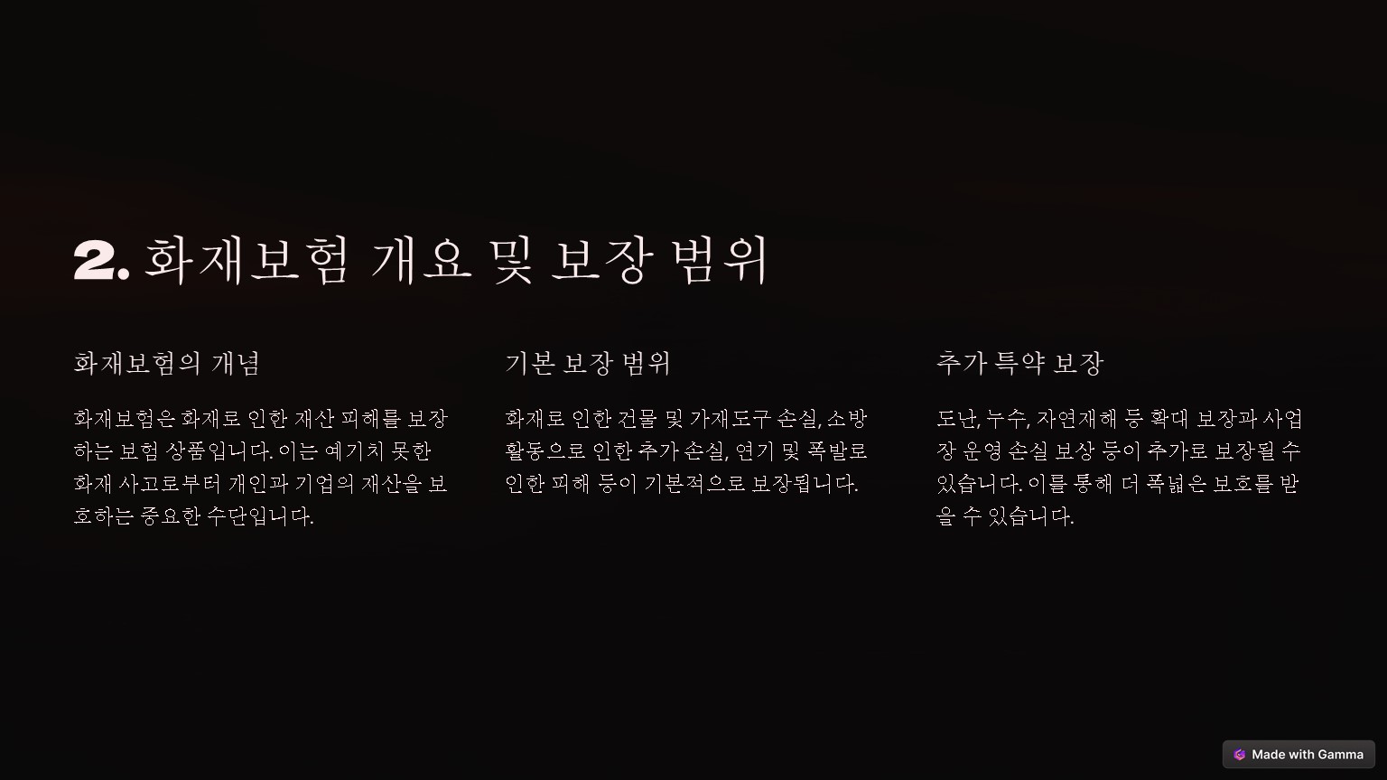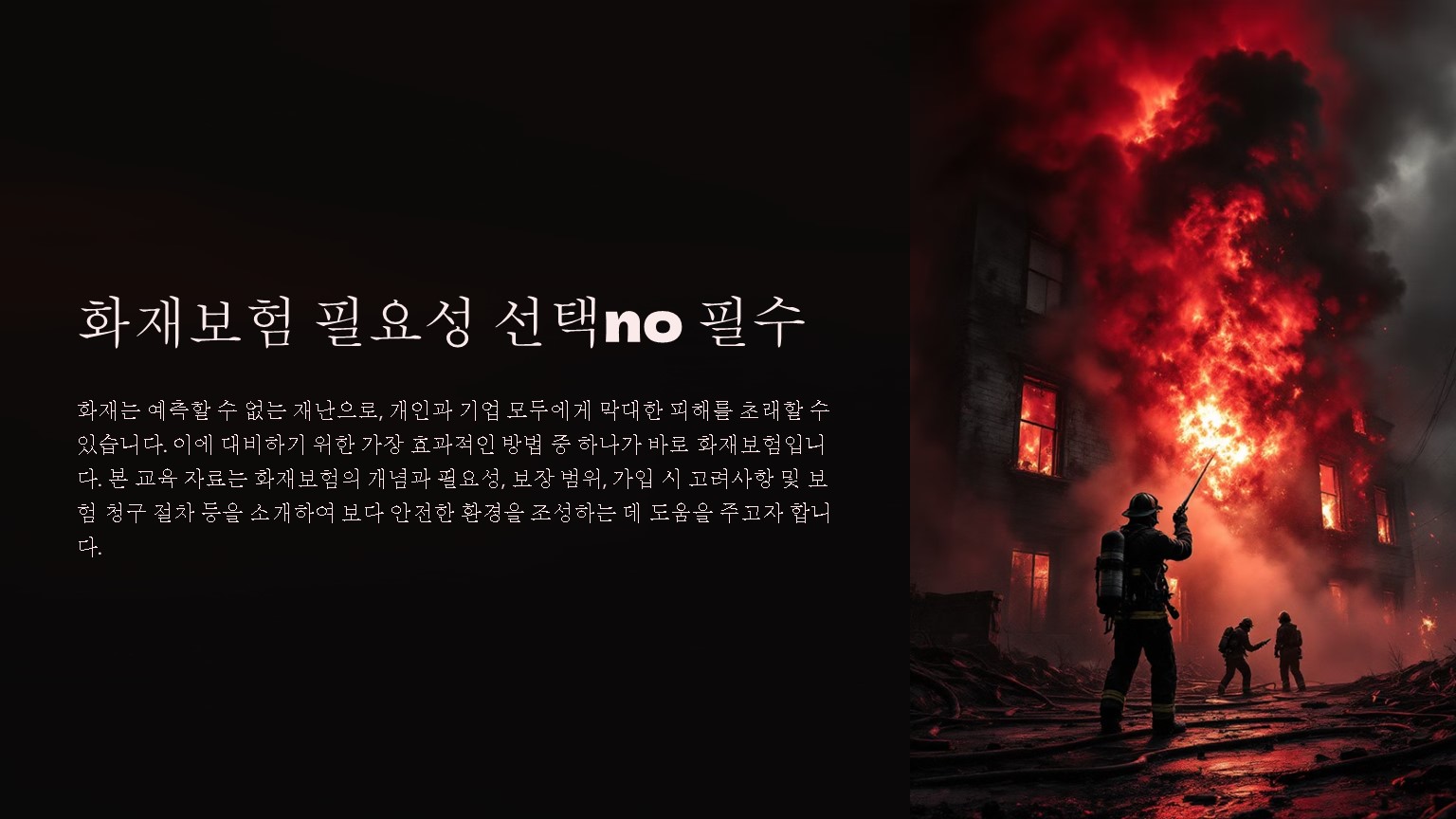 화재보험은 이러한 위험을 최소화하고 안정적인 경제적 기반을 유지하는데 중요한 역할을 합니다